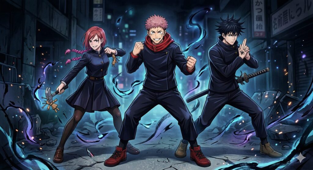 「宿儺の指をすべて集めてから処刑する」という条件のもと、虎杖は死を受け入れながら東京都立呪術高等専門学校へ転入。伏黒恵・釘崎野薔薇とともに、人々を脅かす「呪霊」と戦う日々が始まります。